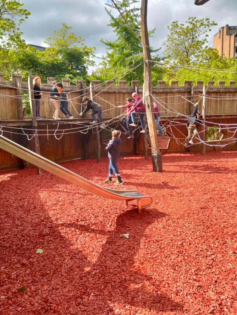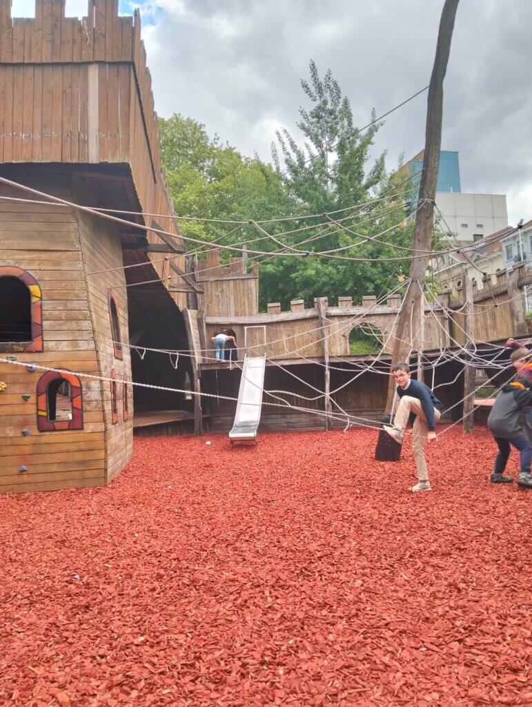 Après avoir déposé les bagages à l’auberge de jeunesse, les enfants ont profité d’un temps de jeux et d’un déjeuner bien mérité au parc de la Porte de Hal. L’ambiance était joyeuse et le soleil au rendez-vous !