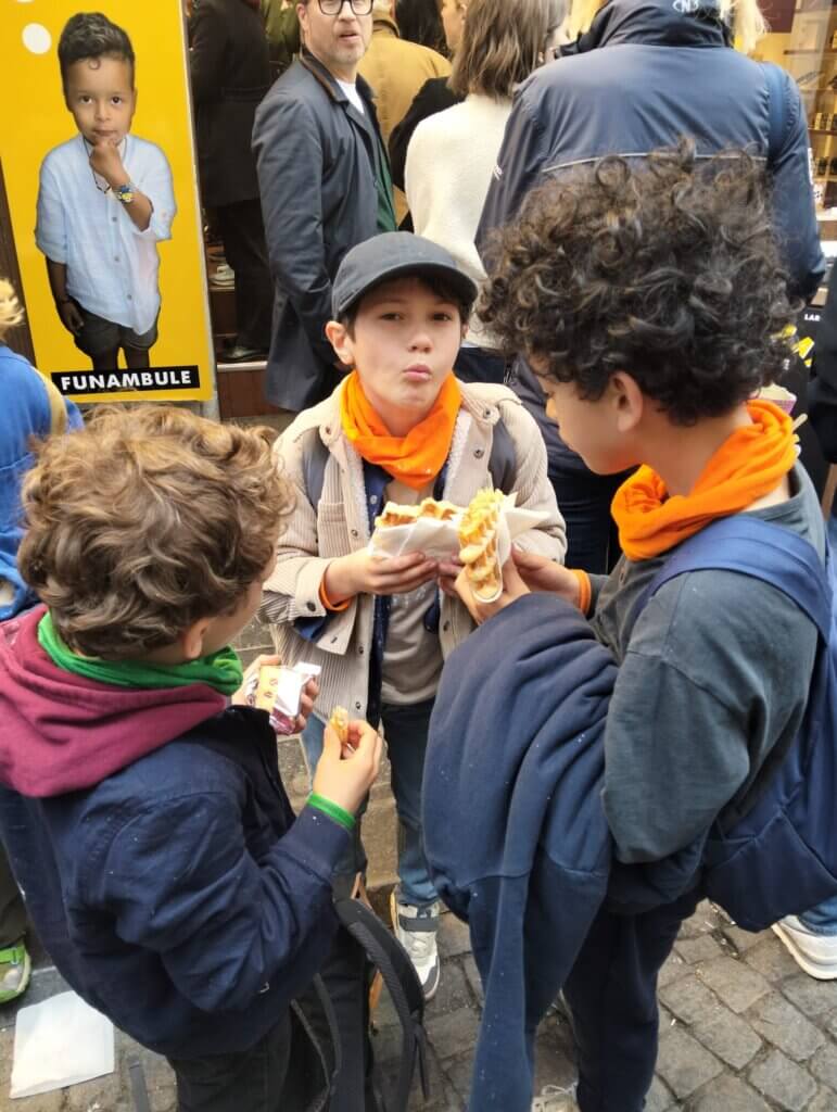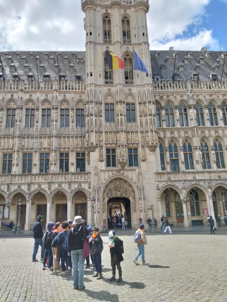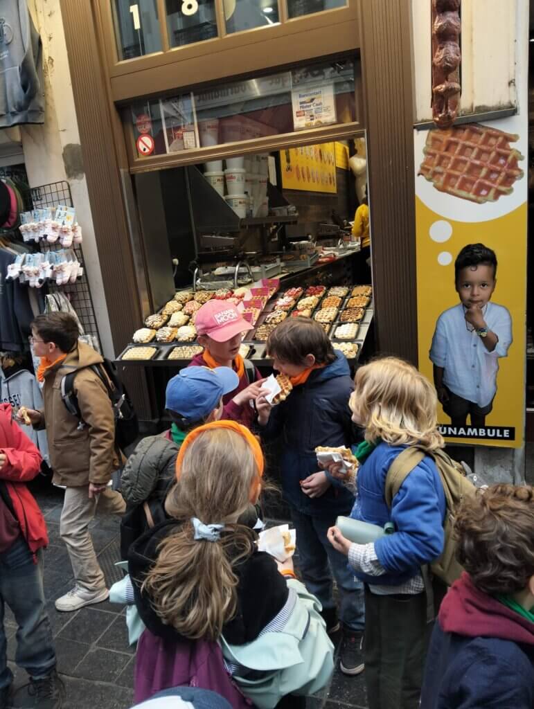 L’après-midi a été consacré à une visite guidée du centre-ville de Bruxelles, où les élèves ont pu découvrir les lieux emblématiques de la ville. La journée s’est poursuivie par un goûter sur la Grand-Place, avec de délicieuses gaufres belges très appréciées par tous.