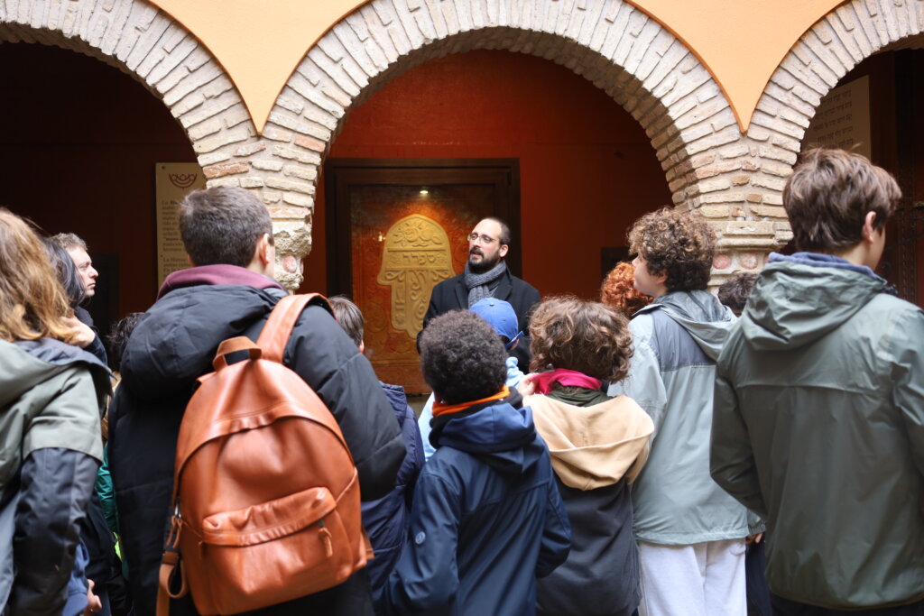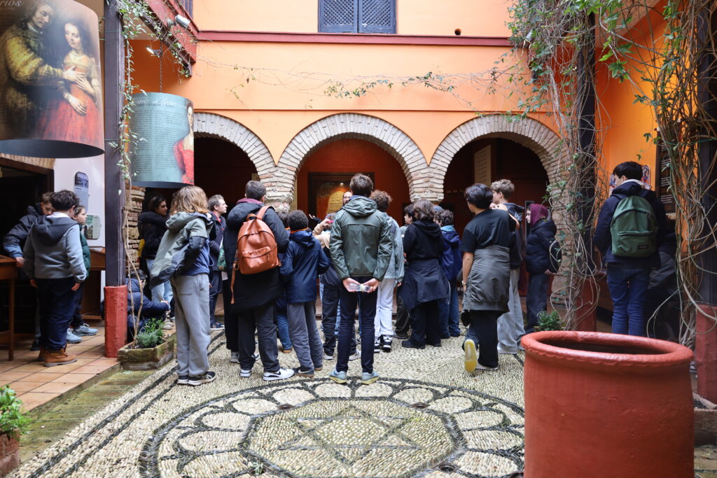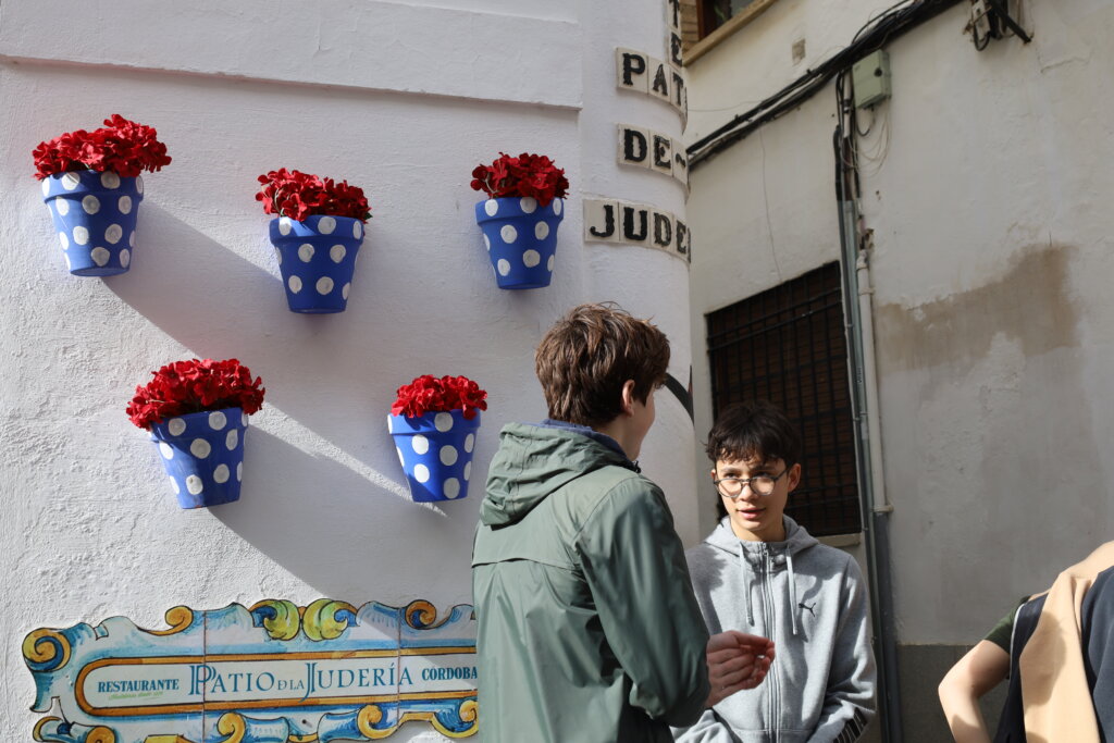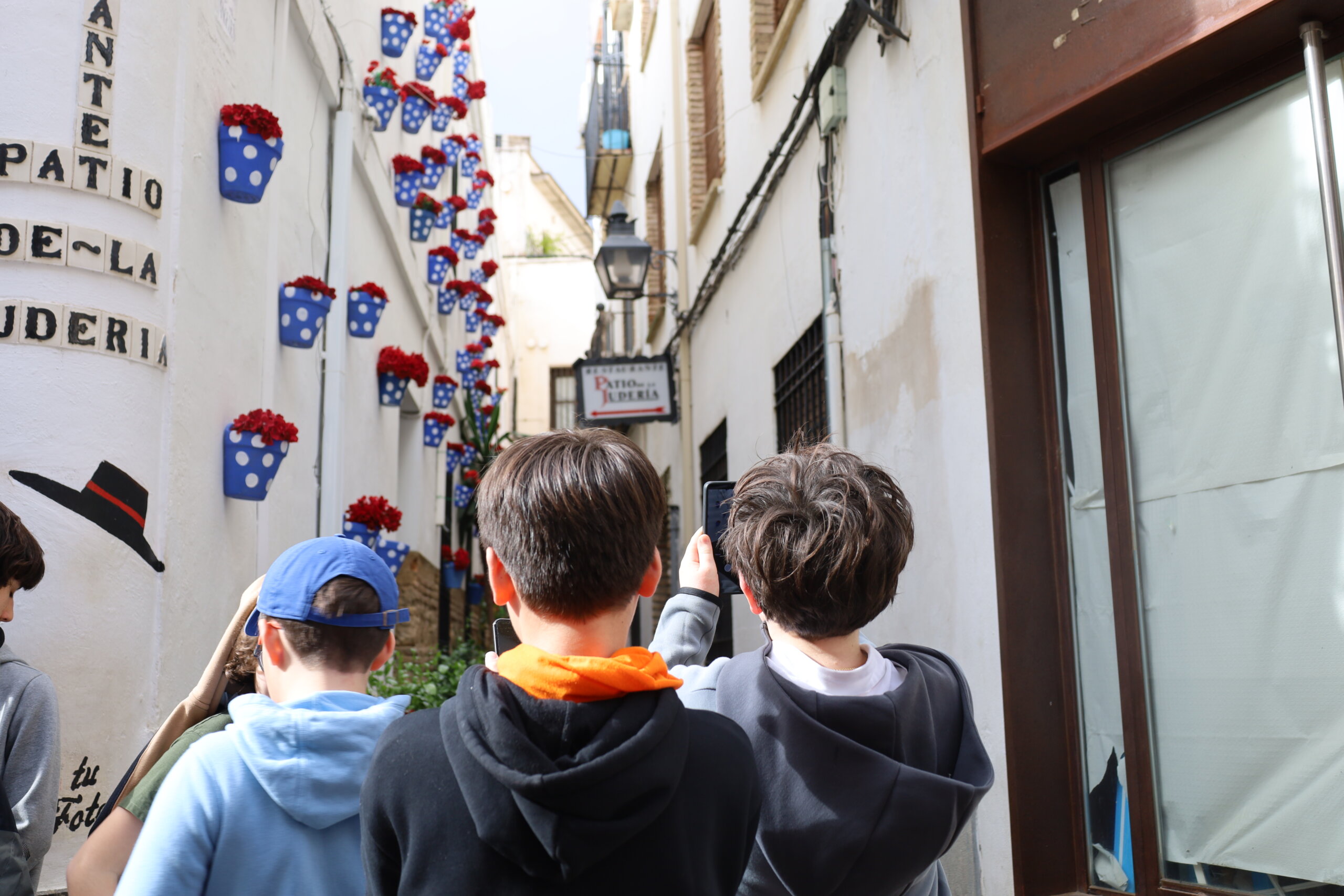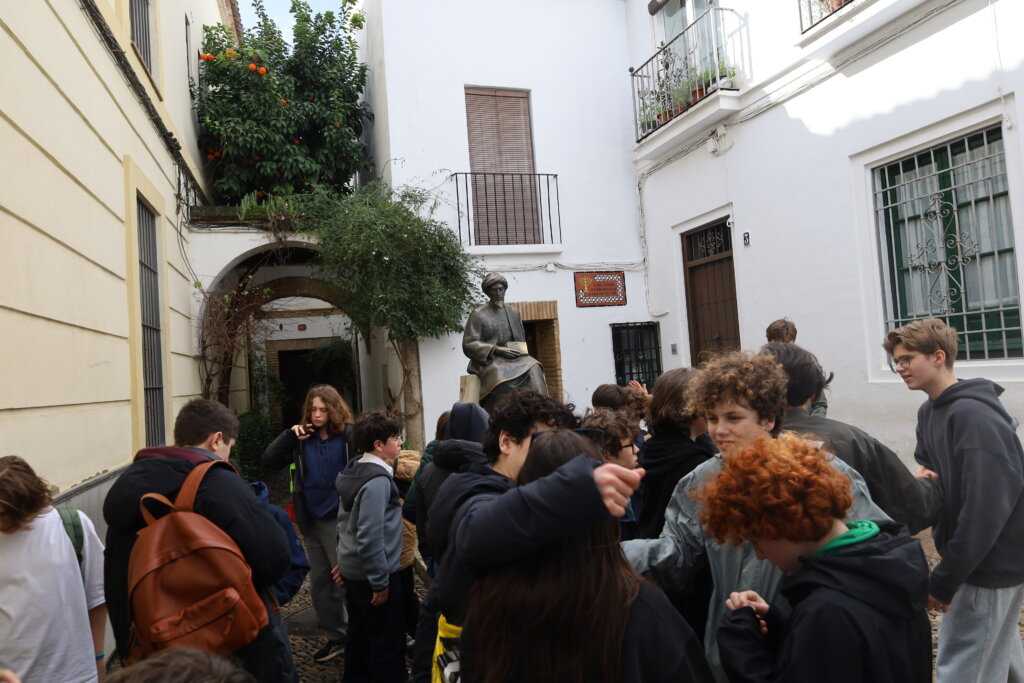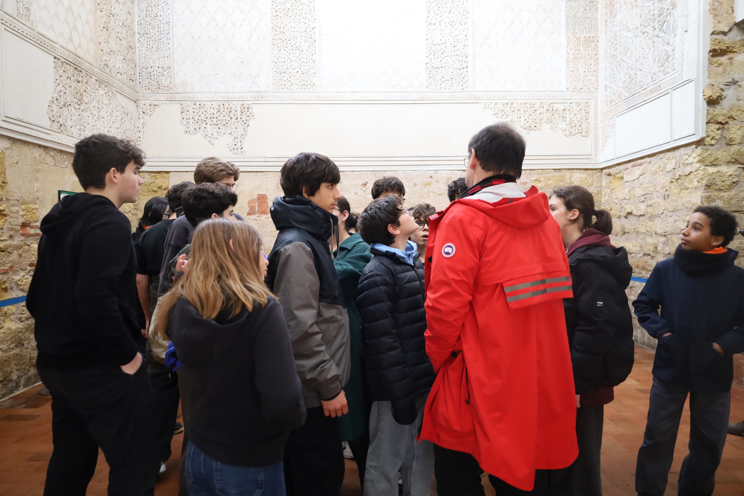De retour à l’hôtel, nous nous sommes installés dans le patio pour poursuivre les exposés entamés la veille. Après le déjeuner, une accalmie nous a permis de nous rendre dans le quartier juif de Cordoue afin de visiter la Maison Séfarade ainsi que la seule synagogue d’Andalousie. Cette visite improvisée s’est révélée particulièrement enrichissante et a permis aux élèves de mieux comprendre l’histoire de l’Andalousie à travers la coexistence des religions. Notre guide a même enrichi la visite de chants dans plusieurs langues, dans un cadre hors du temps.