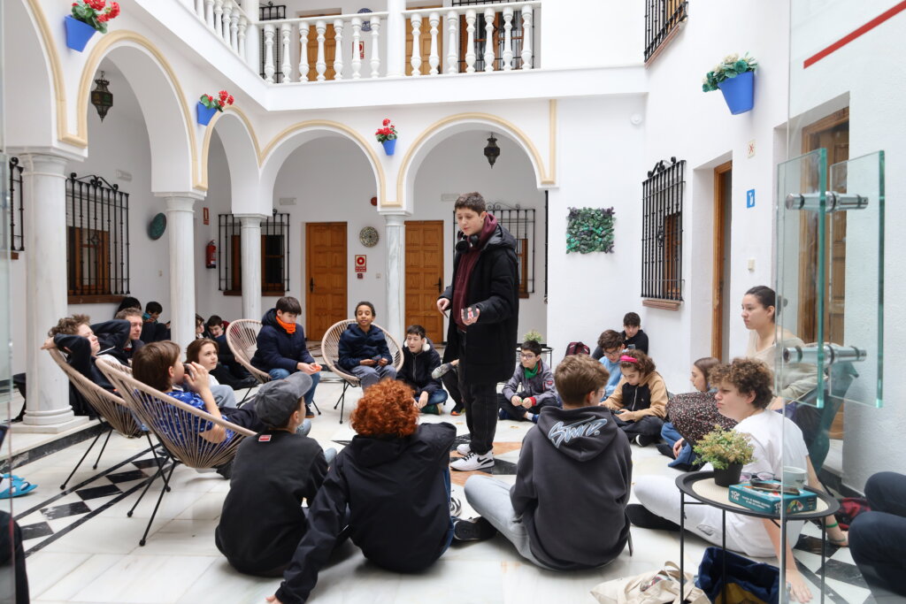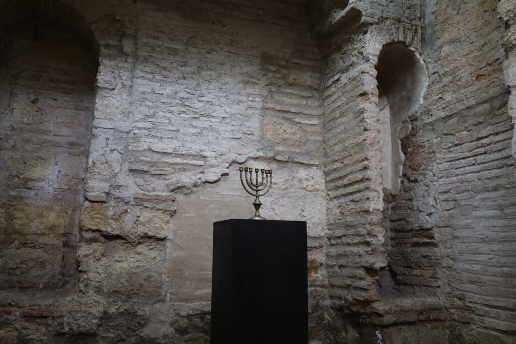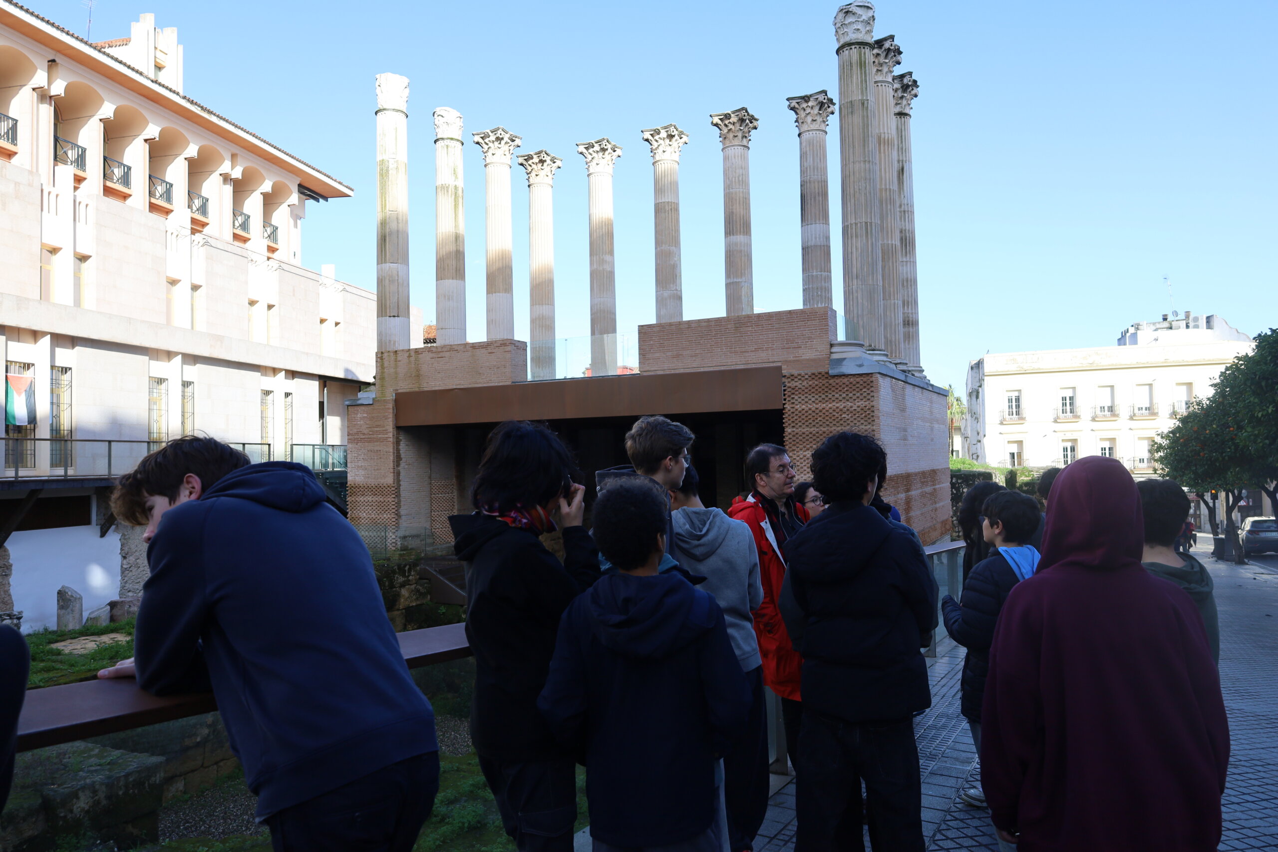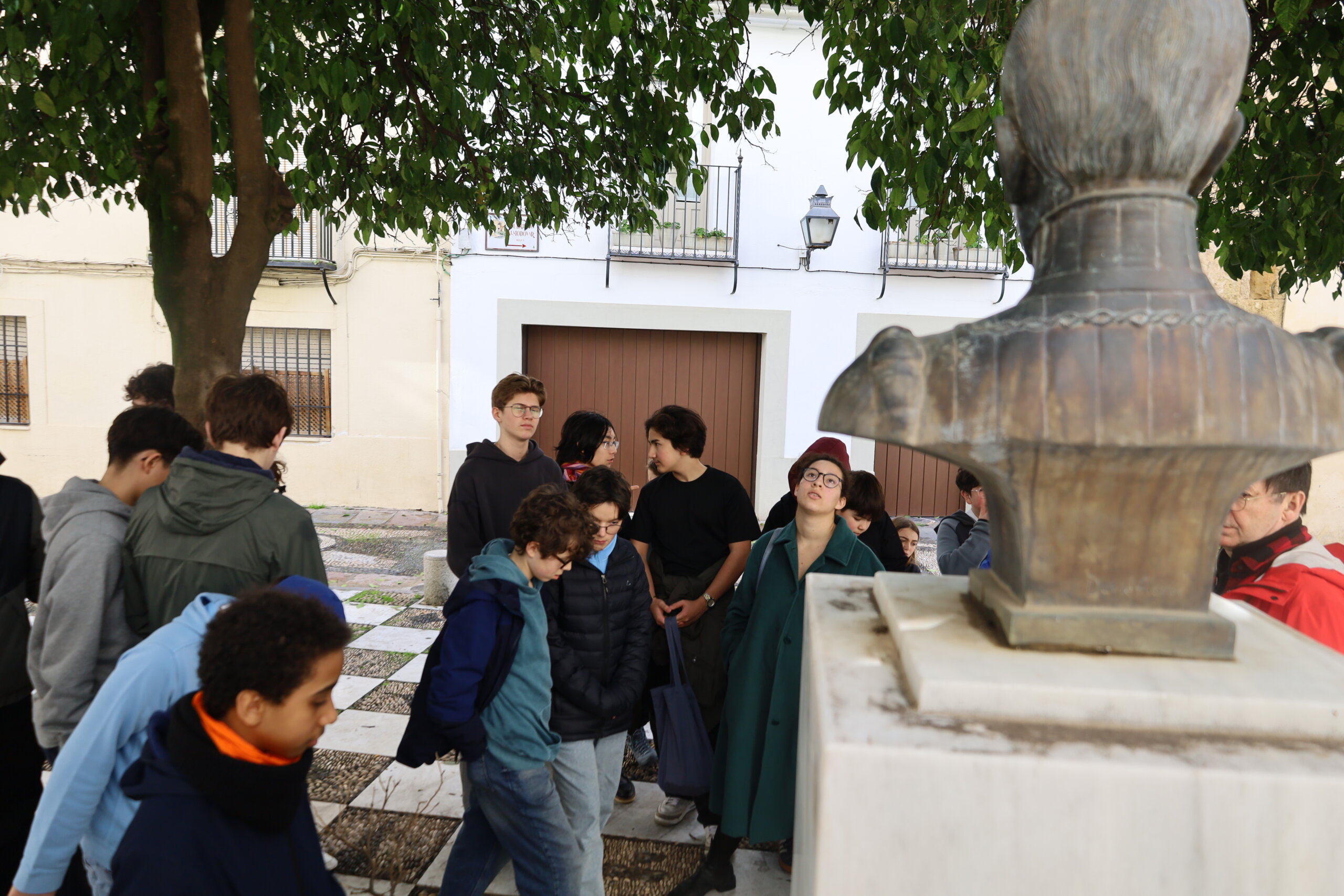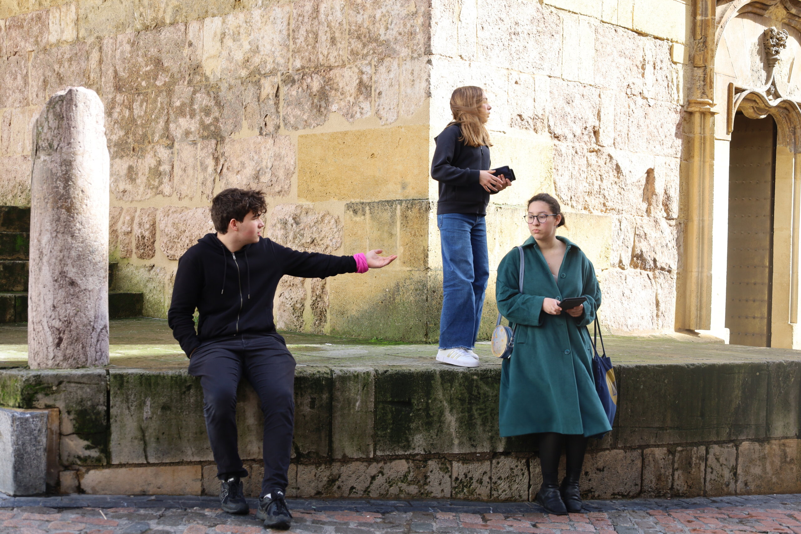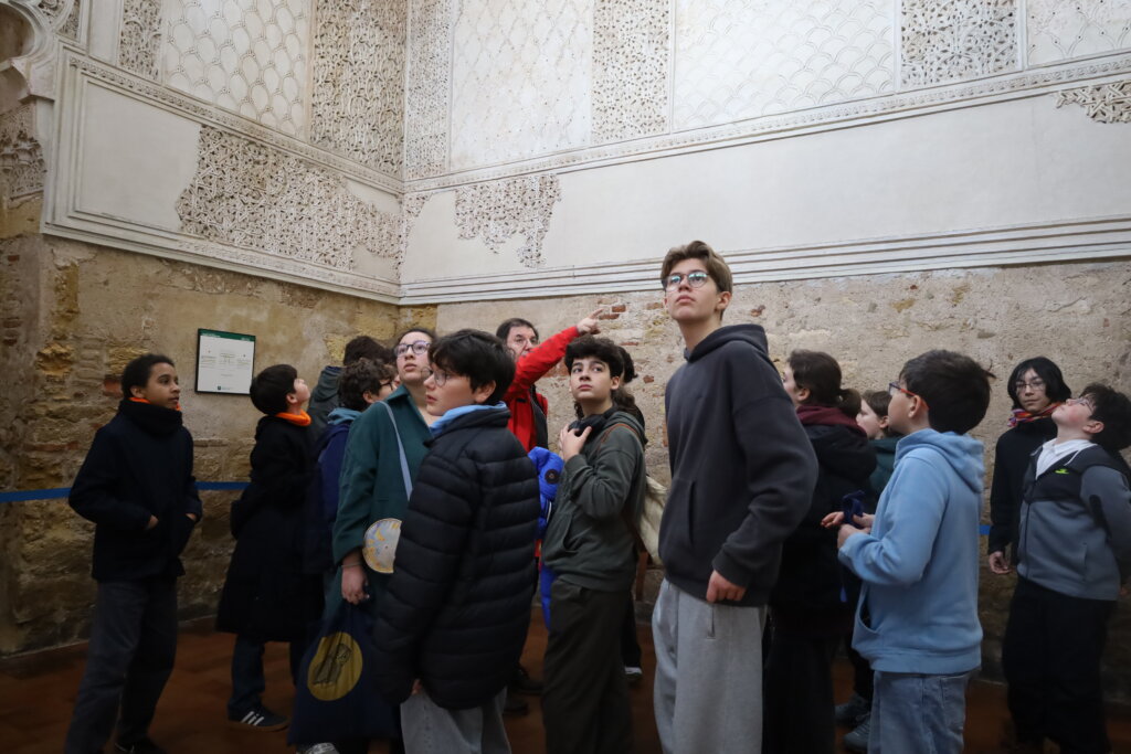De retour à l’hôtel, nous nous sommes installés dans le patio pour poursuivre les exposés entamés la veille. Après le déjeuner, une accalmie nous a permis de nous rendre dans le quartier juif de Cordoue afin de visiter la Maison Séfarade ainsi que la seule synagogue d’Andalousie. Cette visite improvisée s’est révélée particulièrement enrichissante et a permis aux élèves de mieux comprendre l’histoire de l’Andalousie à travers la coexistence des religions. Notre guide a même enrichi la visite de chants dans plusieurs langues, dans un cadre hors du temps.