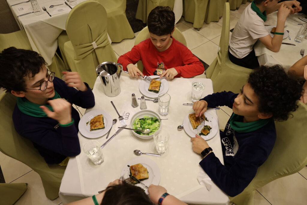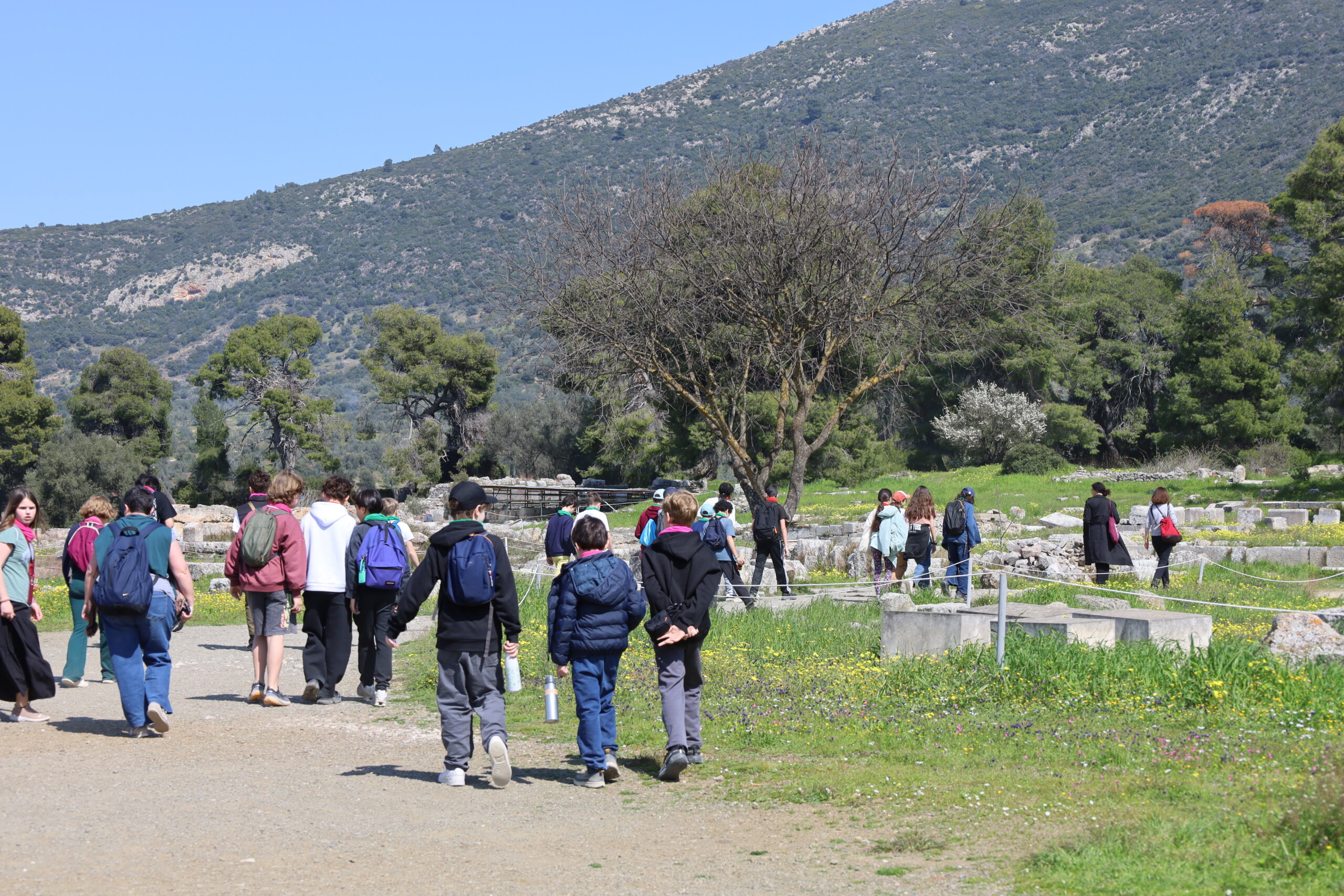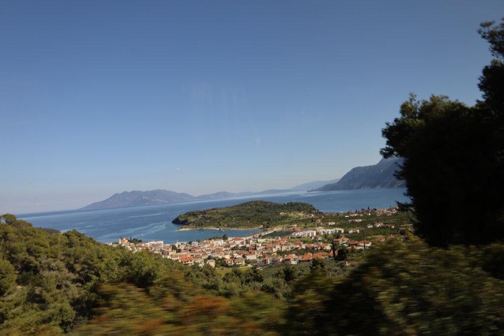 Le trajet, plus court que celui de la veille, s’est déroulé dans une très bonne ambiance. Pour occuper les plus impatients, un nouveau quiz, cette fois consacré aux visites à venir, a animé une partie du voyage. Par la fenêtre, nos élèves ont également pu admirer la mer Égée ainsi que de vastes forêts d’oliviers qui couvrent les paysages de la région.