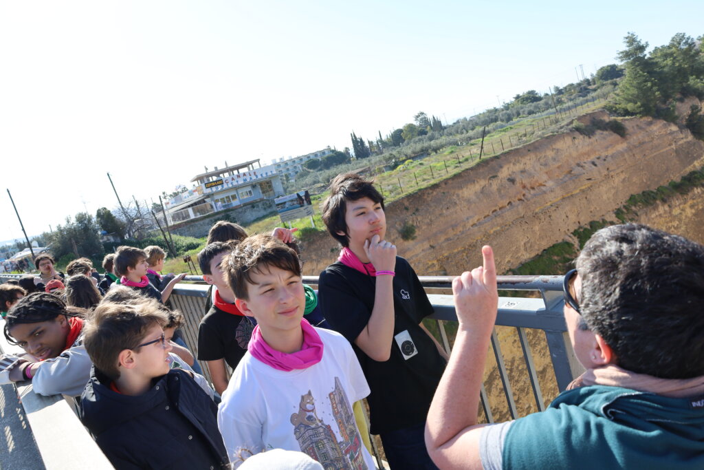 Après un bon déjeuner à Ligourio, nos élèves ont repris la route en direction du célèbre canal de Corinthe. Ils ont pu l’admirer depuis une passerelle, pour ceux qui n’avaient pas le vertige ! La vue sur cette impressionnante entaille creusée dans la roche et son histoire ont marqué les esprits.