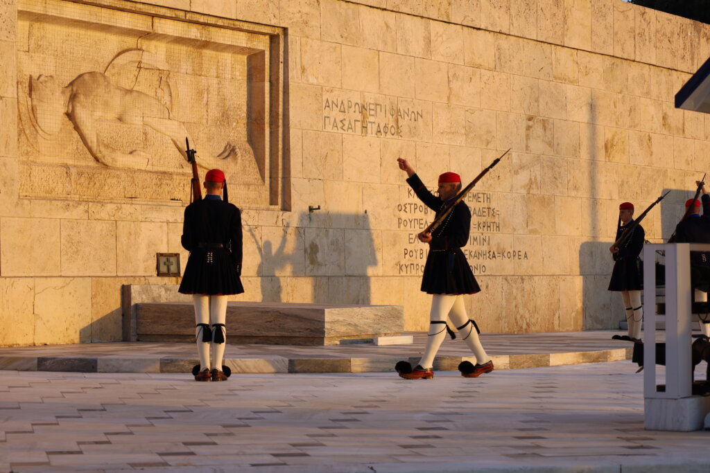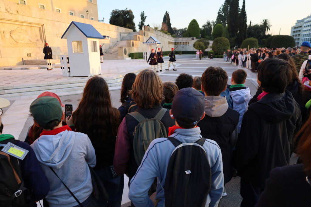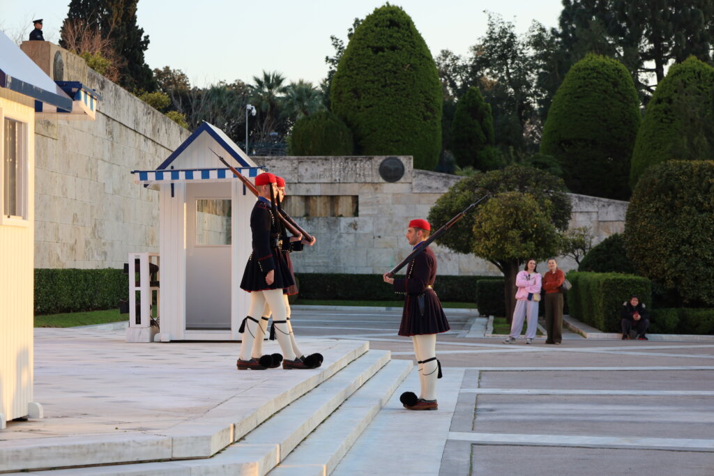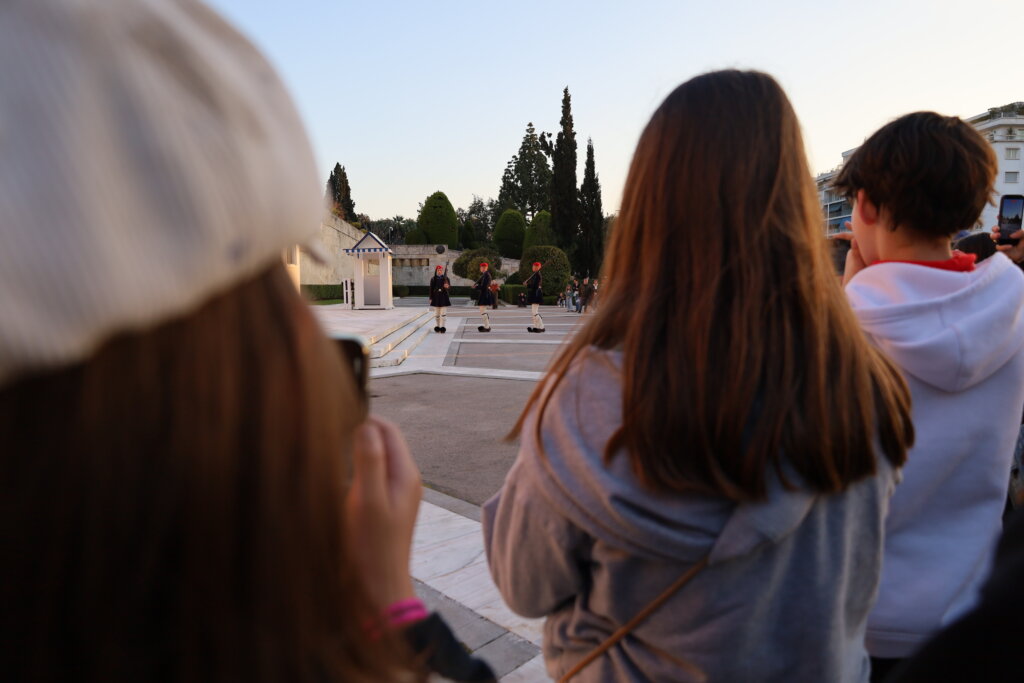 De retour à l’hôtel, nos élèves ont déposé leurs souvenirs avant de repartir pour une petite balade en ville. Ils ont été particulièrement fascinés par la relève de la garde. L’un des soldats est même venu les saluer ! Un moment marquant pour les élèves, d’autant plus qu’ils connaissaient déjà l’histoire et la signification de cette garde grâce aux explications données pendant le trajet. Ils les ont bien sûr aussitôt imités.