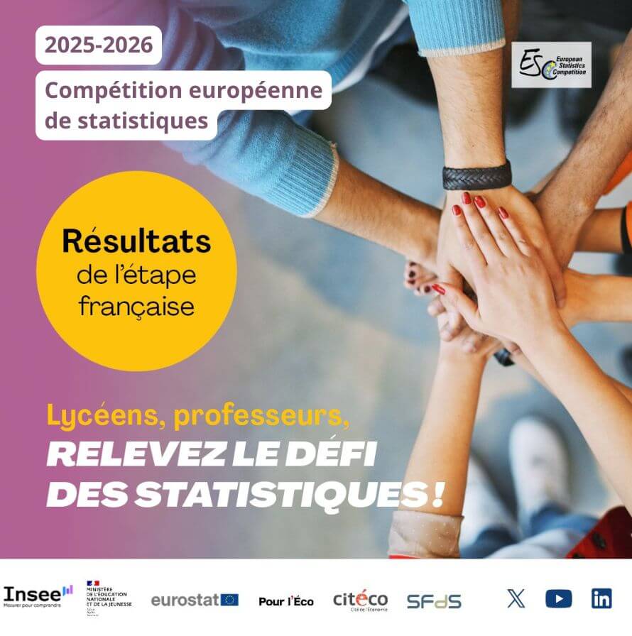 La Compétition européenne de statistiques permet aux élèves des établissements français de se mesurer à ceux d’une vingtaine d’autres pays, tout en renforçant leur culture statistique. L’étape française de cette compétition est ouverte aux élèves de première et terminale de tous les lycées de France et lycées français à l’étranger.
